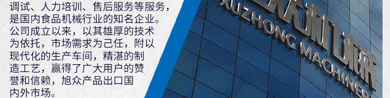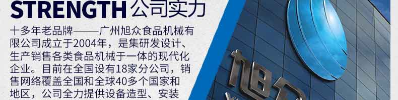 廣州旭眾食品機(jī)械有限公司是一家集科研開發(fā),生產(chǎn)設(shè)計,營銷服務(wù)為一體的現(xiàn)代化生產(chǎn)企業(yè)?,F(xiàn)代化生產(chǎn)車間,精湛制造技術(shù),所產(chǎn)機(jī)械歷經(jīng)市場重重考驗,不斷贏得海內(nèi)外客戶的贊譽(yù)。